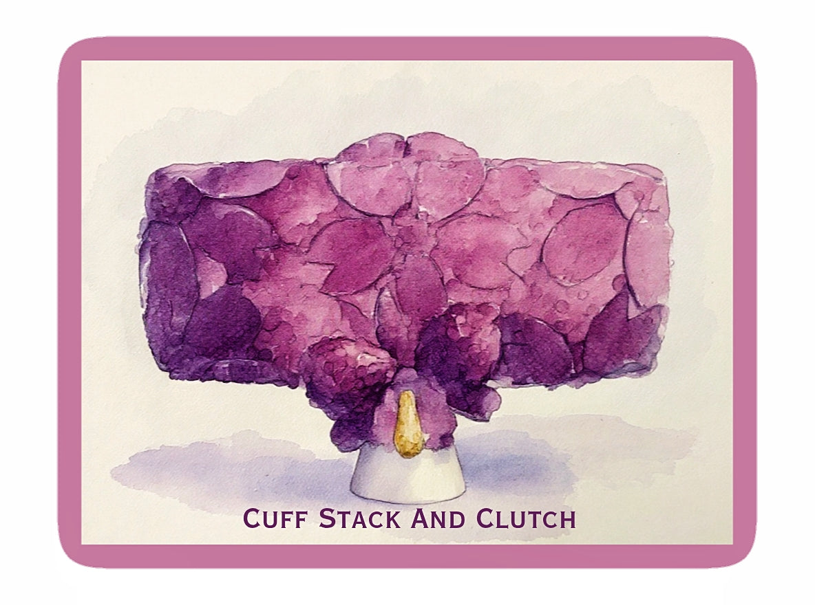 Genuine 925 Sterling Silver and Cubic Zirconia Pave Diamond Fuchsia Pink Orchid Ring. Size Adjustable. Fuchsia Pink Crystal Earrings and Clutch Purse. Shoulder chain, dust bag and watercolor gift tag included