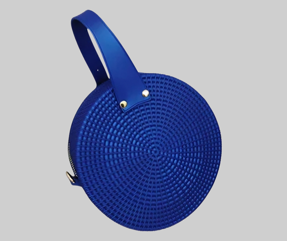 PU, Zipper Circular Jelly Handbag, Custom Weave, Interior Cell Phone Pocket. 20 x 20 x 8 cm