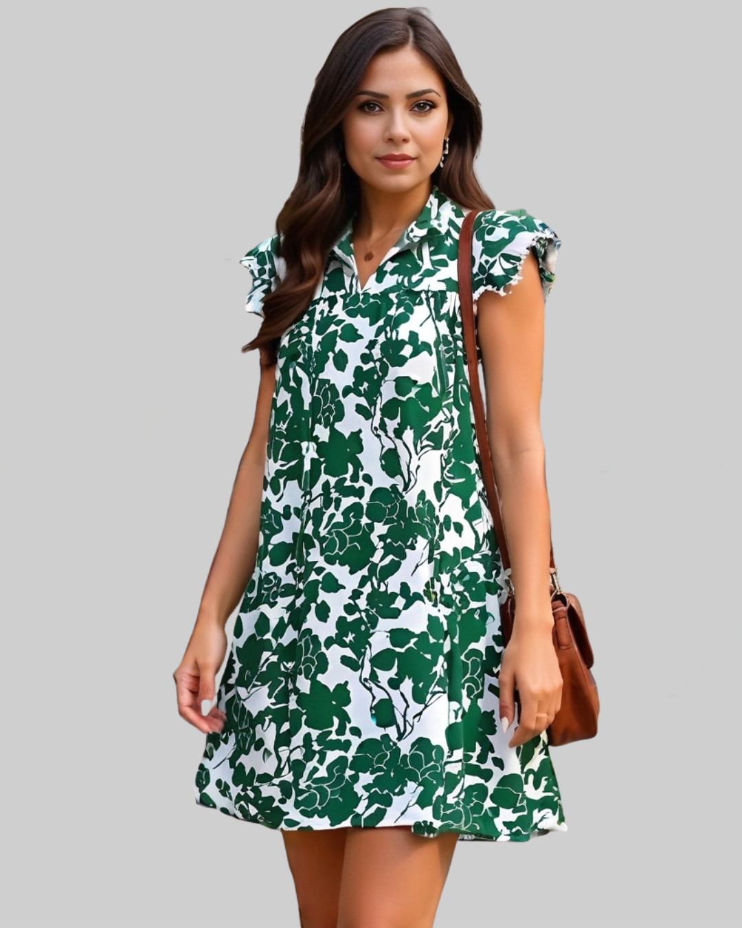 Green and White Floral Mini Dress