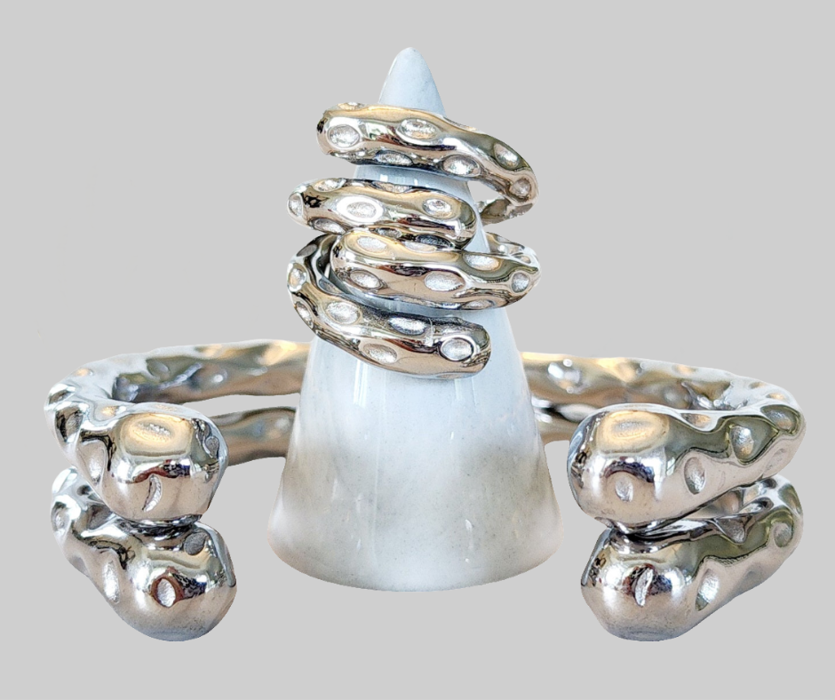 Silver Double Cuff Double Ring