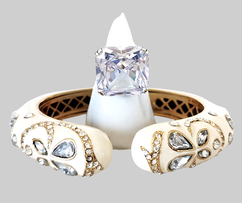 Off White Diamond Enamel Cuff and Sterling Silver Diamond Ring