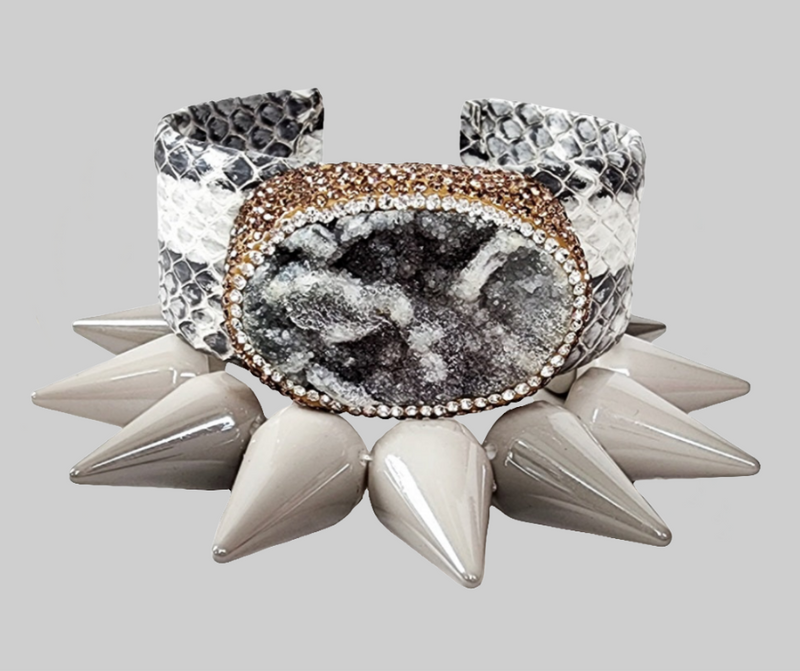 Gray Snakeskin Pave Stone Embellished Cuff and Ring