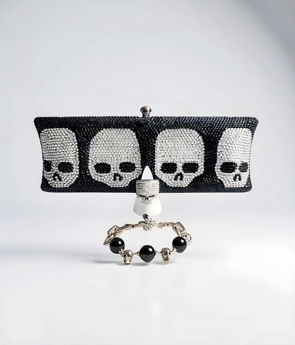 Crystal Skull Clutch Purse, Ring and Bracelet