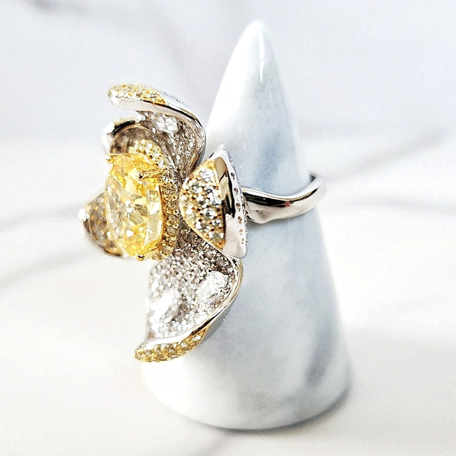 Genuine Sterling Silver 925. Oval Cut Citrine High Carbon Diamond Cocktail Ring