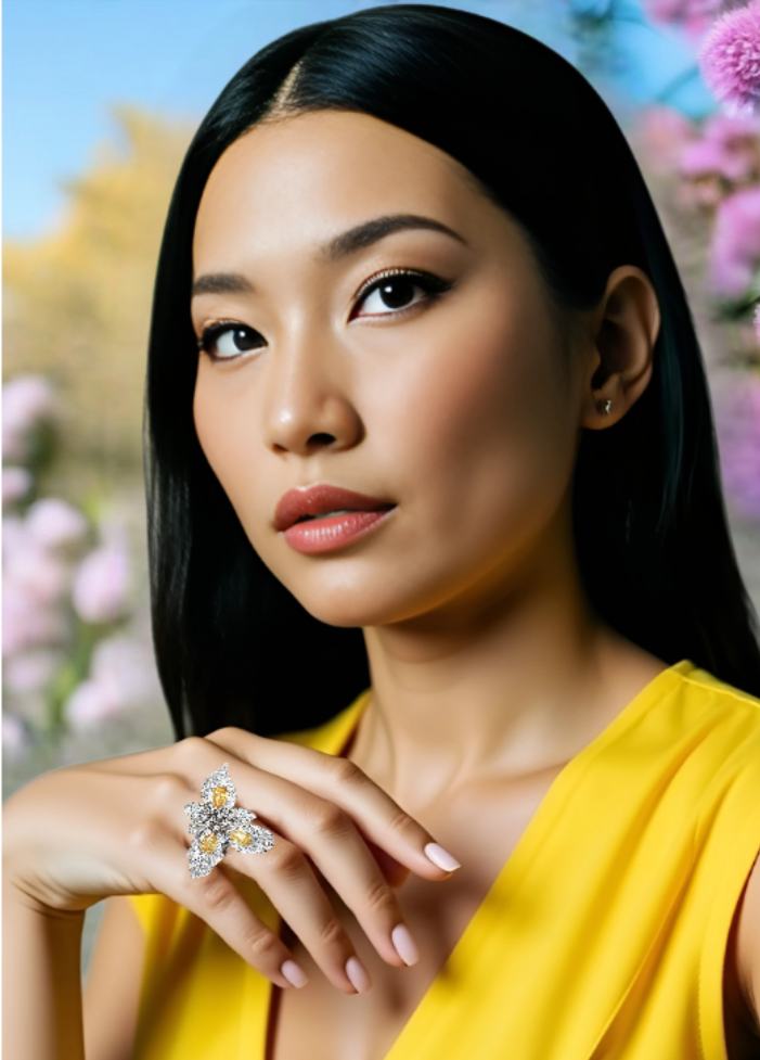 Genuine Sterling Silver 925. Yellow and White Cubic Zirconia Flower Ring.