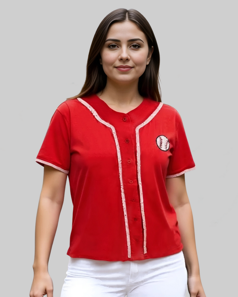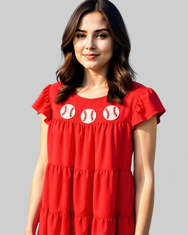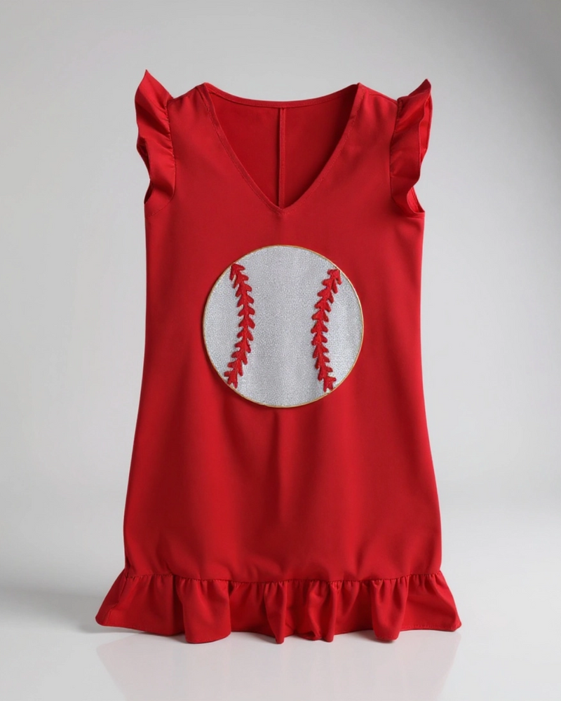 Red Sequin Baseball Ruffle Sleeve T-shirt
