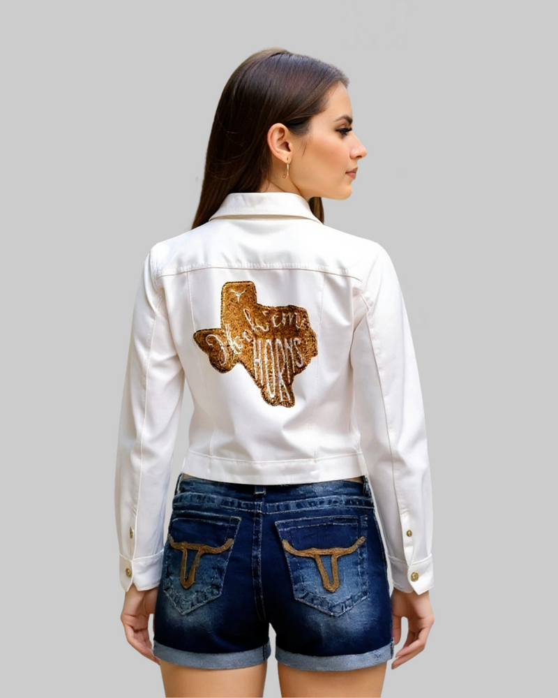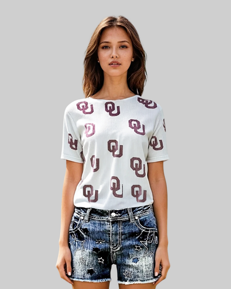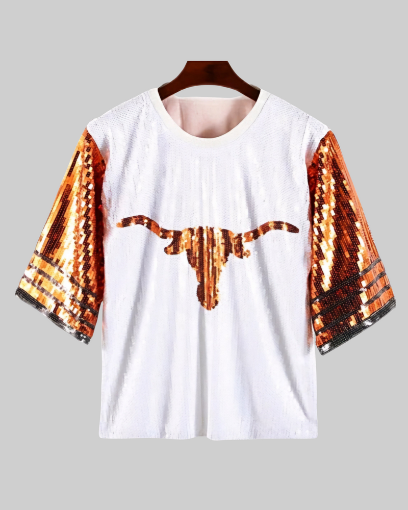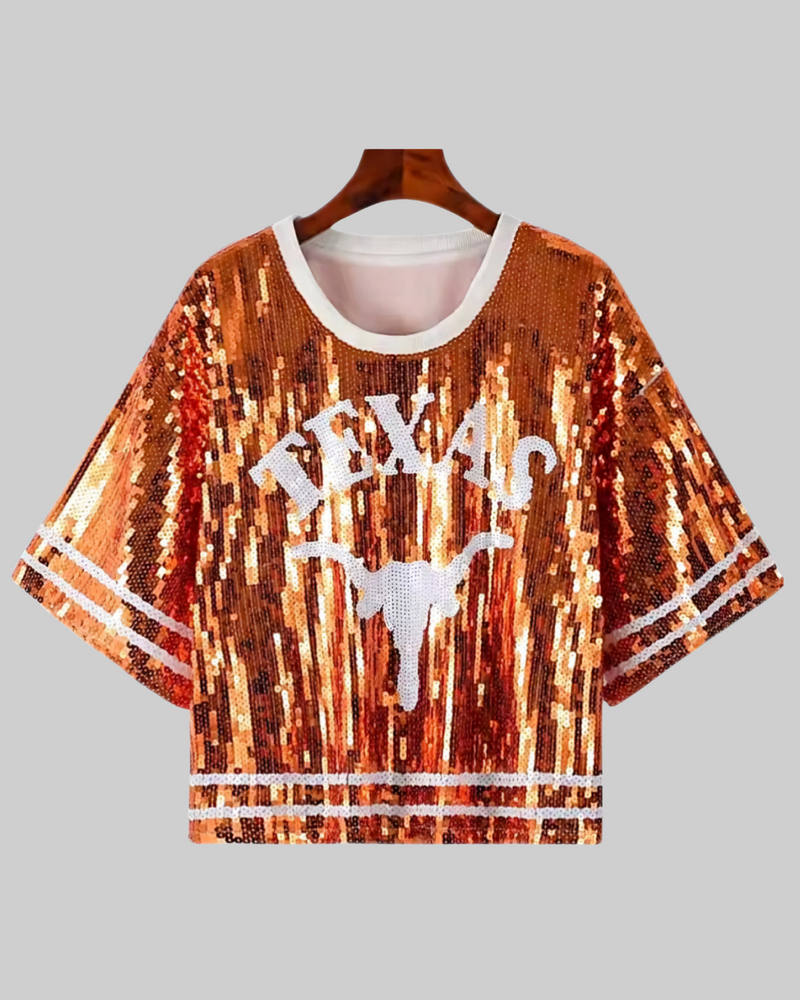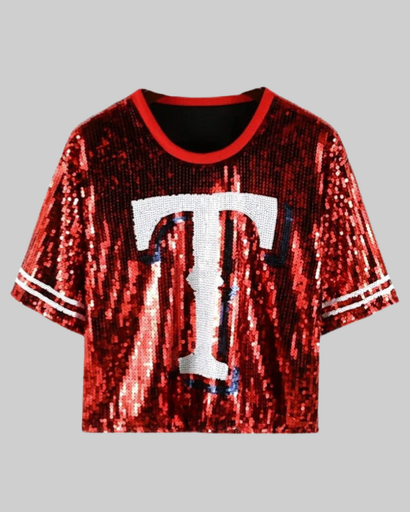 White Sequin Football Crop Top- Short Sleeve T-shirt