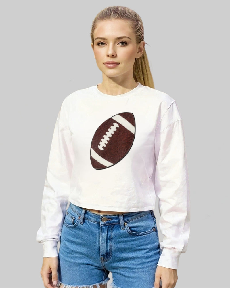 White Sequin Football Crop Top-Long Sleeve Tshirt